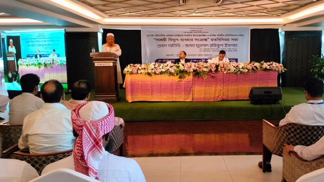 ঢাকা ইলেকট্রিক সাপ্লাই কোম্পানি লিমিটেড (ডেসকো) আয়োজিত ‘সাশ্রয়ী বিদ্যুৎ ব্যবহার’ বিষয়ক মতবিনিময় সভা বৃহস্পতিবার রাজধানীর একটি কনভেনশন হলে অনুষ্ঠিত হয়। সভায় ডেসকো আওতাধীন এলাকার মসজিদের ইমাম, মুয়াজ্জিন ও মসজিদ কমিটির প্রতিনিধিরা অংশগ্রহণ করেন।