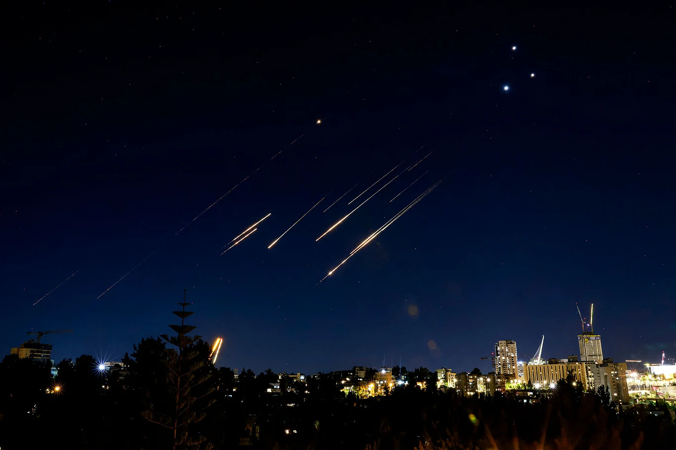 ছবিঃ ইসরায়েলকে লক্ষ্য করে ইরান থেকে ছোড়া ক্ষেপণাস্ত্র। ১৪ জুন ছবি: এএফপি