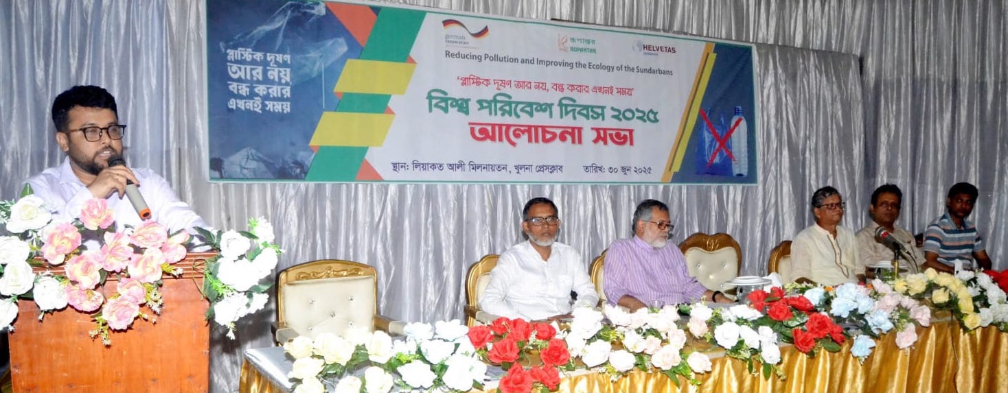 শাকিল আহমেদ, PNN খুলনা প্রতিনিধি: পরিবেশবাদী সংগঠন রূপান্তর খুলনা প্রেস ক্লাবের লিয়াকত আলী মিলনায়তনে বিশ্ব পরিবেশ দিবস ২০২৫ উপলক্ষে এক আলোচনা সভা ও সাংস্কৃতিক অনুষ্ঠানের আয়োজন করে। পরিবেশ রক্ষা, সুন্দরবনের সংকট এবং প্লাস্টিক দূষণ নিয়ে গুরুত্ববহ আলোচনা হয় অনুষ্ঠানে।