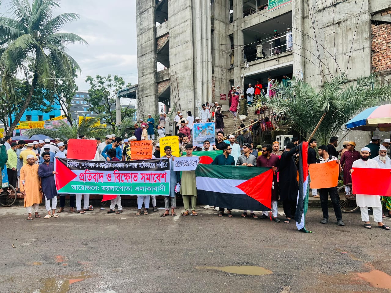 খুলনা, ২৯ আগস্ট ২০২৫ – আজ শুক্রবার জুম্মার নামাজের পর খুলনা জেলার ময়লাপোতা এলাকা থেকে সাধারণ জনগণ গাজার জনগণের প্রতি সমর্থন জানাতে শান্তিপূর্ণ আন্দোলন কর্মসূচি পালন করেছে। এই কর্মসূচিতে অংশগ্রহণকারীরা বিভিন্ন স্লোগান দিচ্ছিলেন এবং আন্তর্জাতিক সম্প্রদায়কে গাজার মানুষের অধিকার রক্ষায় তৎপর হতে আহ্বান জানিয়েছেন।