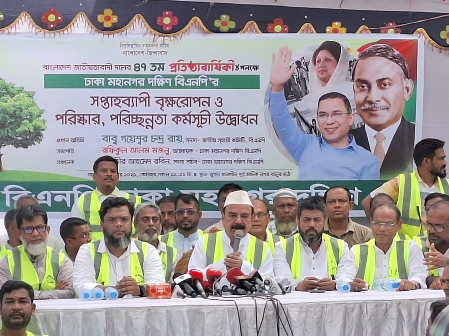 ঢাকা মহানগর দক্ষিণ বিএনপির সপ্তাহব্যাপী বৃক্ষরোপণ ও পরিষ্কার–পরিচ্ছন্নতা কর্মসূচির উদ্বোধন করেছেন বিএনপির স্থায়ী কমিটির সদস্য গয়েশ্বর চন্দ্র রায়। আজ মঙ্গলবার দুপুরে রাজধানীর মুগদার পূর্ব মানিকনগর বালুর মাঠসংলগ্ন এলাকায় এ কর্মসূচি শুরু হয়।